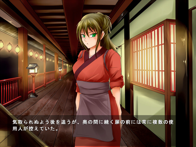 Dark rumors were circulating about a brothel named "Kagetsu." A ninja girl (kunoichi) named Natsume is sent to do an investigation of the facts. However, she gets captured and she is subjected to a cruel sexual assault and training. DLsite]