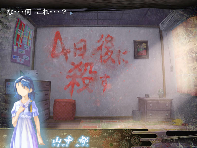 The main character Yamadera Miyako is a normal middle school student. One day, the words "You will die after 4 days" appear in her room. Since that day, many weird things started to happen around her. The incident gradually start to involve people around her. Can you find out the truth, and disba...