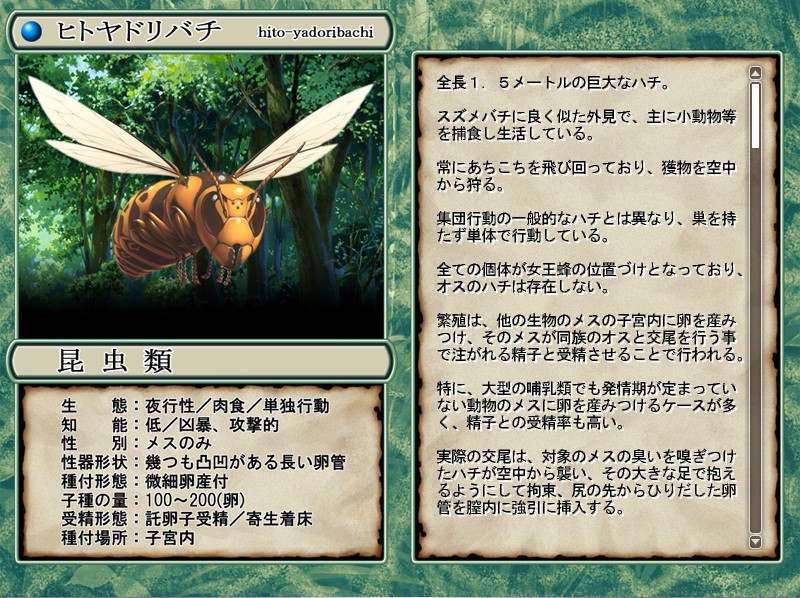 The forest is full of dangers... There are many monsters that can be called natural enemies of humans.