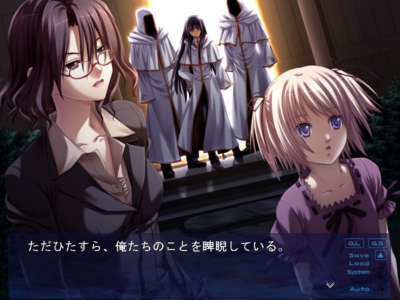 There is a small island called Kugaitou. Several decades ago, a man moved there and secretly formed a religious group. He was soon revered by people on the island and the group got bigger. Souichirou, the main character, was born and grew up there.... Time passes.... Souichirou is about to move to T...