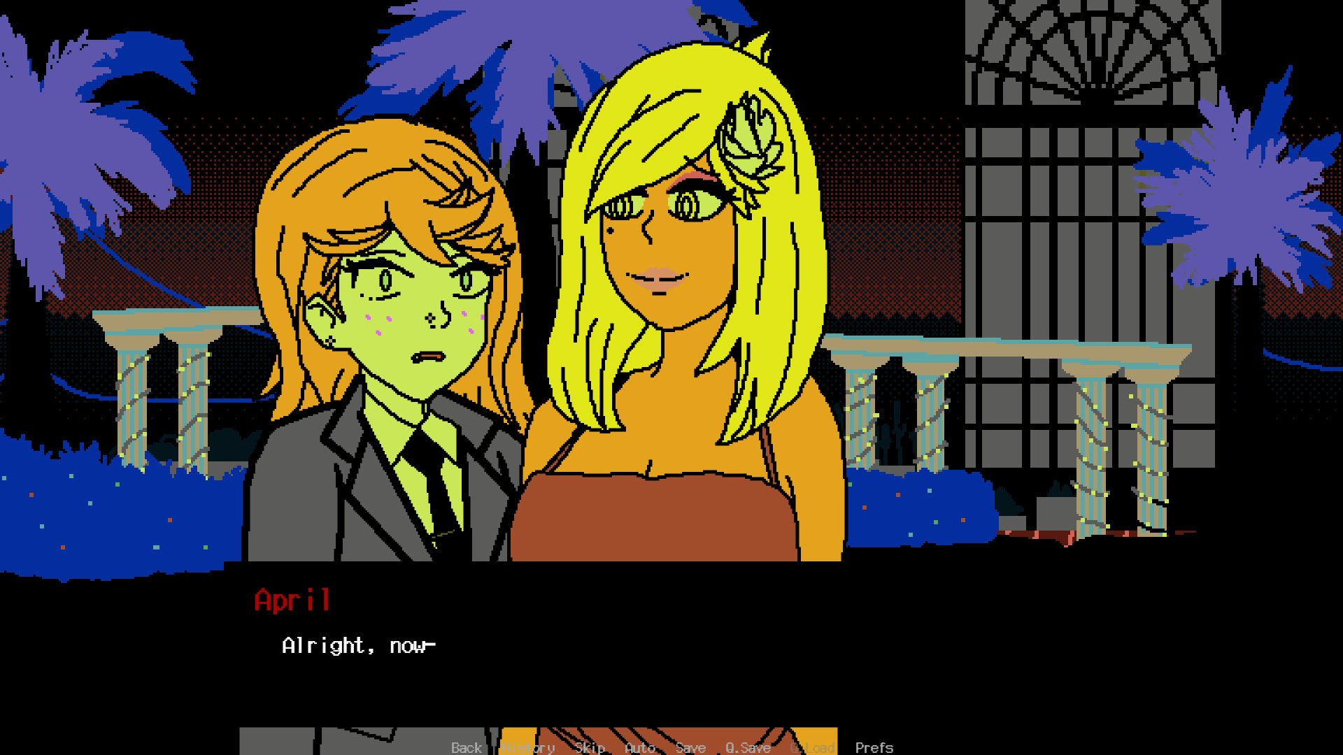 It's been over a year since that dreaded autumn. Over spring break, April takes Scarlet out to the Spring Fling Dance at the botanical gardens by campus. What follows is a short story about how we take care of each other, shifting roles, and letting a relationship grow. Itch.io]