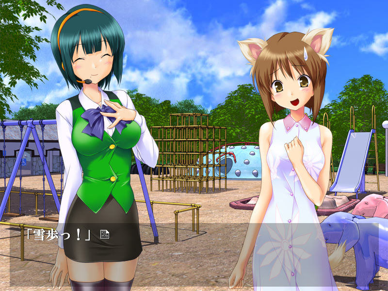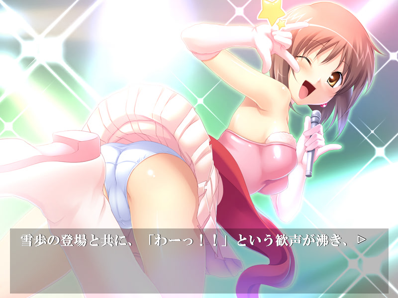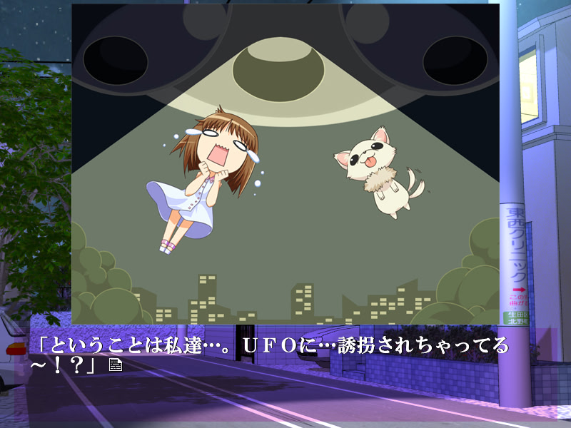 Idol Yukiho runs away from a dog and gets abducted by a UFO. Moreover, she is merged with the dog during teleportation. She gets cute dog ears, but also beast estrus. Main character is her producer who needs to promote her as idol with dog ears and also deal with her intimate problem. vndbreview]