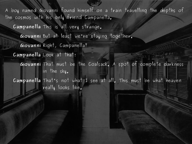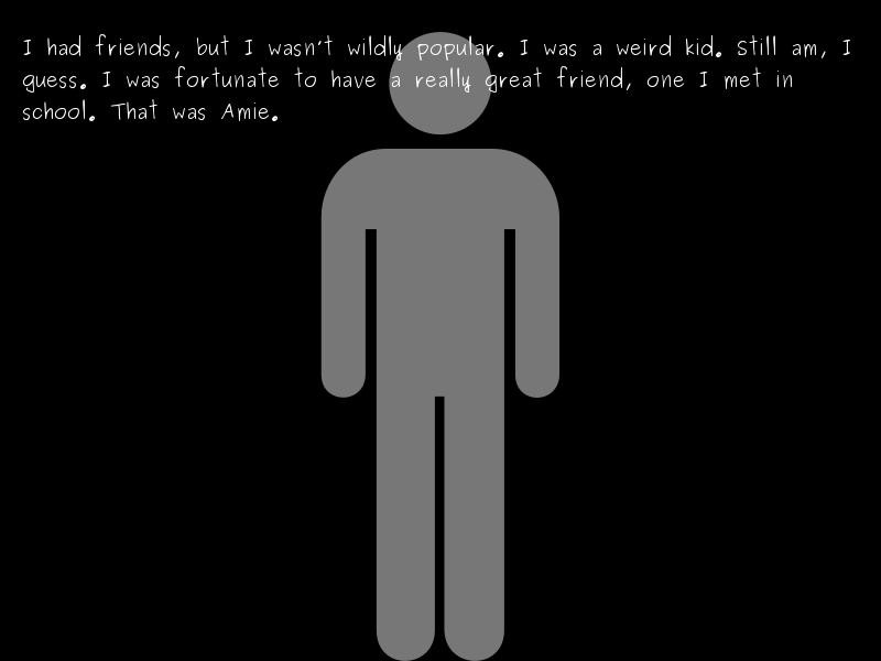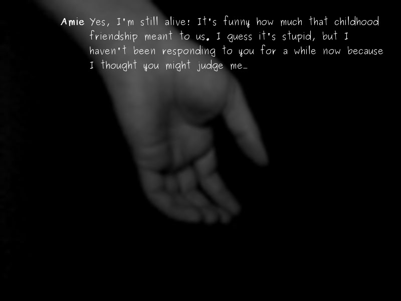 “Remembering Amie” is a short kinetic novel about Francis, who, on the cusp of adulthood, remembers his childhood friend Amie.