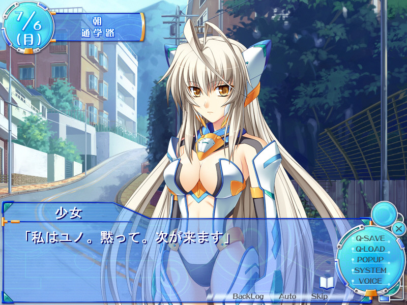 He is saved by a girl called Yuno. According to her, she is an android his grandfather invented. Kotarou is surprised to hear that and runs away from her. He tries to forget it, but Yuno transfers to his class on the next day.