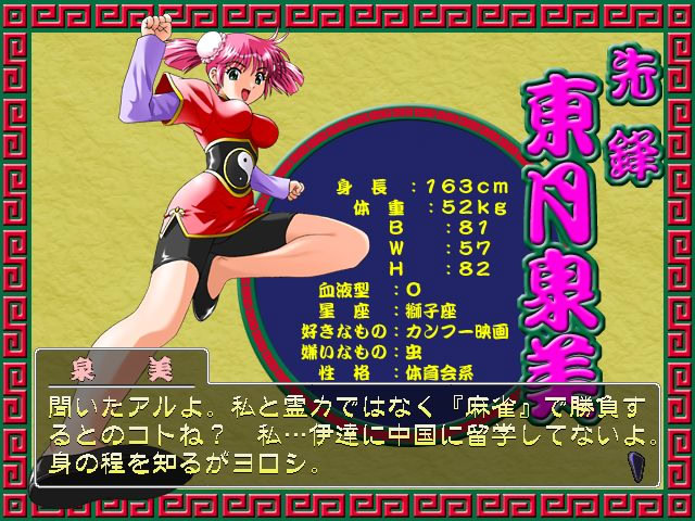 Protagonist decides to play Mahjong again with Akane as his new assistant. This time scene is girls' school with all kind of heroines as opponents. It's an undressing game, and after top and underwear stages there is punishment full voiced stage for each girl. vndbreview]