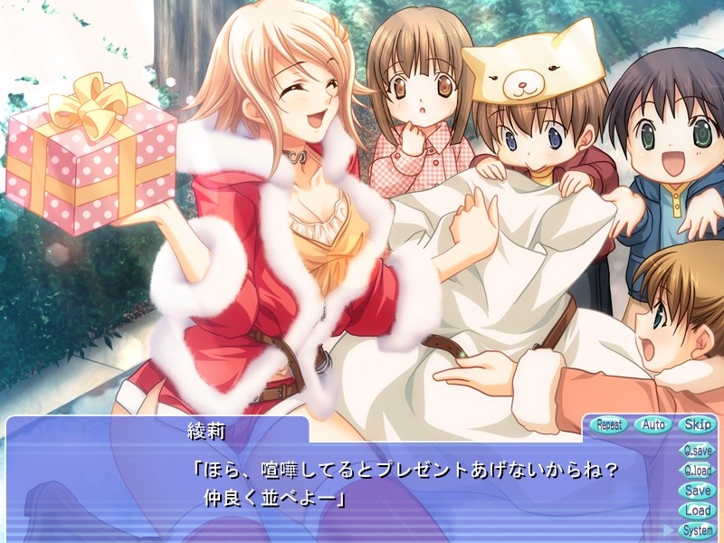 One day, a strange girl wakes the main character, Kanata, up in a strange room. He is taken to school, but he doesn't remember it at all. A while later, he remembers the girl introduced herself to him last night, "I'm Ayari. My job is Santa Claus!" Kanata now completely remembers why he came here ...
