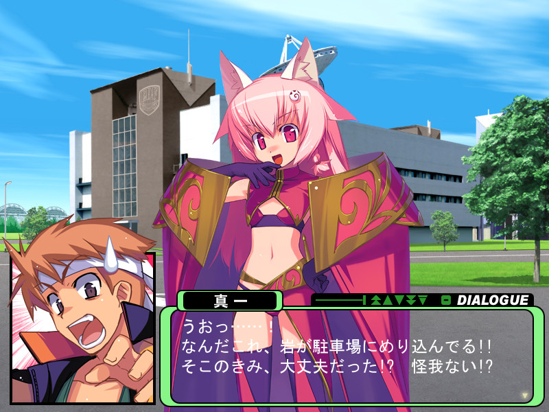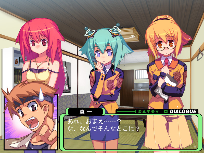 Shinichi, our protagonist, who could be called a humour maniac and who sports the worst short-time memory ever seen in a protagonist, is recruited by Muramatsu Pasta (Commander of the EDF) to pilot Megalaughter.