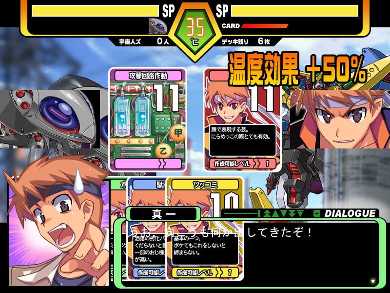 Gameplay is based on card battles. Far from the outer reaches of space come the invading aliens called Reticulians. Dr. Tsukitometa claims that the only weakness of these aliens is humor and begins the construction of the giant superrobot Mega Laughter. Shinichi, our protagonist, who could be cal...