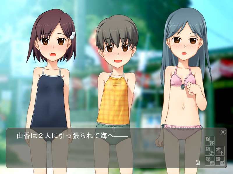 Three girls get excited, while conversing about their no-panties experience. They decide to go out without panties and expose themselves. Their activities range from trying out skirts in various places to taking off bathing suits on the beach and showing off to the boys in the park.