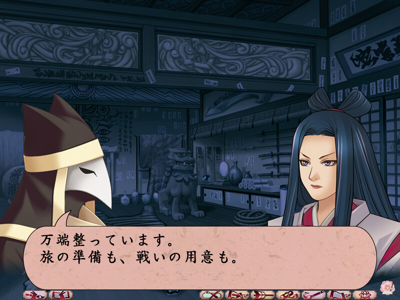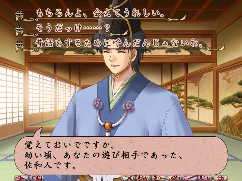 Ayashi no Miya is a princess whose father met an untimely end. In the game’s world, humans and demons lived somewhat side-by-side… that was until the king’s death. The king had 4 trusted generals; in the wake of his death these generals started to drift apart and had conflicts arising from differing interests. Just because the king managed to establish his kingdom so that humans and demons lived together it didn't mean all of the generals liked it, and in the middle is the Ayashi no Miya; she has no power, no authority or influence, but she’s the daughter of the previous king and she’s half-demon. In other words, she’s an excellent political tool.