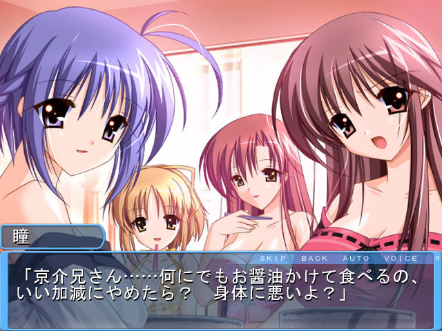 Tomohiro lives alone. But one day, Michiru, his older brother's wife, and Hitomi, his older sister, come to his place and start living there. Hazuki, his PE teacher, and Reiko, a daughter of a caretaker of his apartment, also join them and his life suddenly turns into a paradise...! ErogeShop]