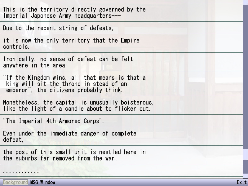 The Empire of Japon once ruled the entire land of Japon. Now diminished and cornered, the Empire prepares to make its last stand as the tanks of the Kingdom of Japon draw close to its capital. Shoutaro Daihon’ei, Lieutenant of the Imperial Army moves out to the battlefield, followed closely by the loyal Human Tanks in his company.