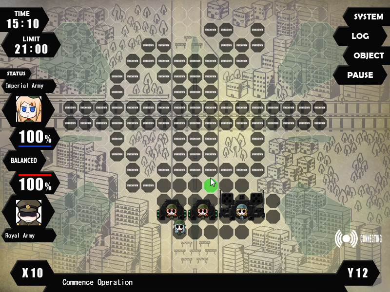 War of the Human Tanks pits the group of Human Tanks commanded by the player against the opposing Commanding Officers and their forces in a campaign fought on a series of grid-based maps. Players will have to use their wits to upgrade their units and utilize them to the best of their abilities in order to progress throughout the game.