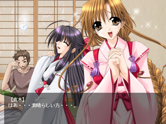 Main character moves to a house left by his deceased grandfather. In the middle of the night he wakes up from a blowjob being given by a beautiful woman. Then she disappears without trace. It turns out that this land is full of unique shrines with shrine maidens advancing "spirits as friends" doctri...