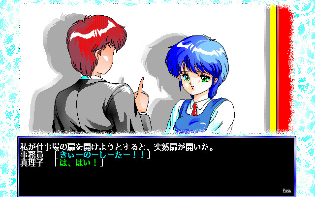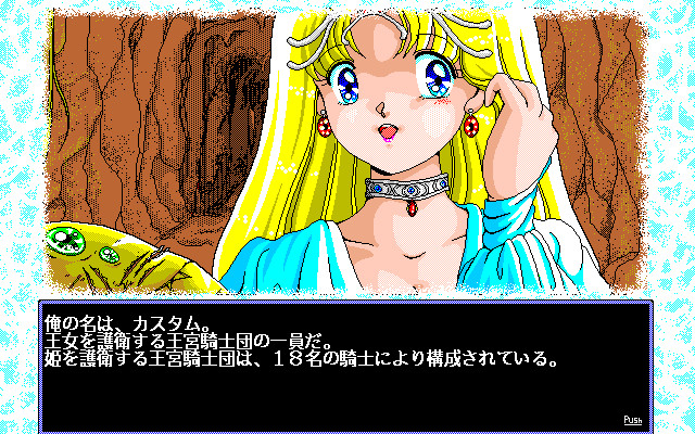 1. A medieval fantasy tale entitled Princess Fantasy, in which the player controls a knight who accompanies a princess on a journey. Depending on the personality choice, the knight can either be brave and compassionate, or cynically take advantage of the helpless girl.