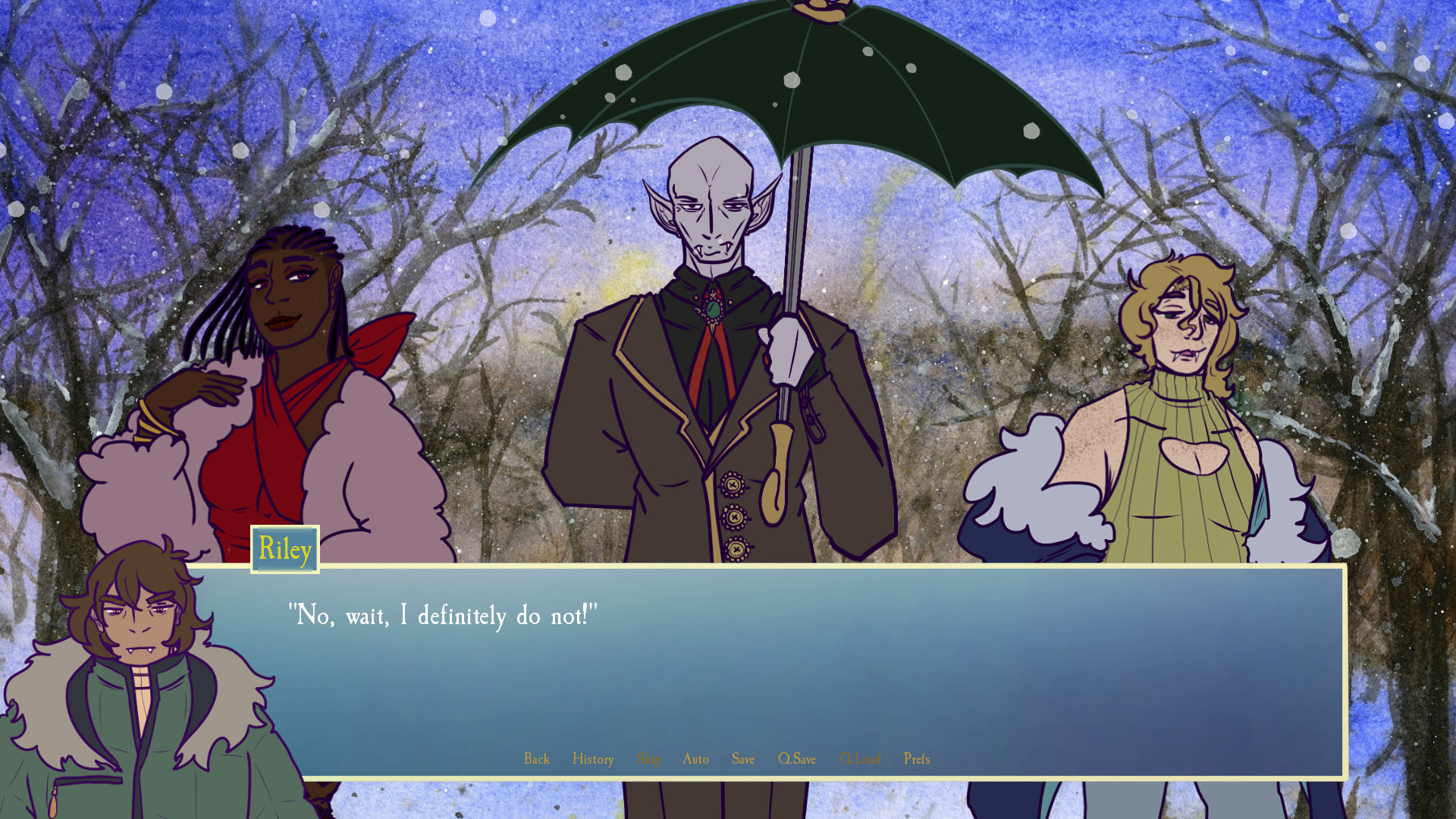 It was supposed to be a typical winter solstice festival, but then the truth is sprung upon you: you only have one night to choose your future spouse from among the vampire attendees. Which cold-blooded creature of the night will you marry? itch.io]