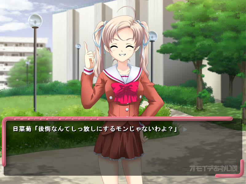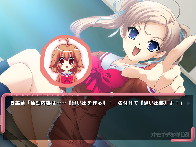 Main character's school gets closed. Only two childhood friends still play at this place. Meanwhile, a constantly missing student girl shows up and establishes Memories Department to preserve memories of this school. She wants to recreate all notable school events throughout the year. vndbreview]