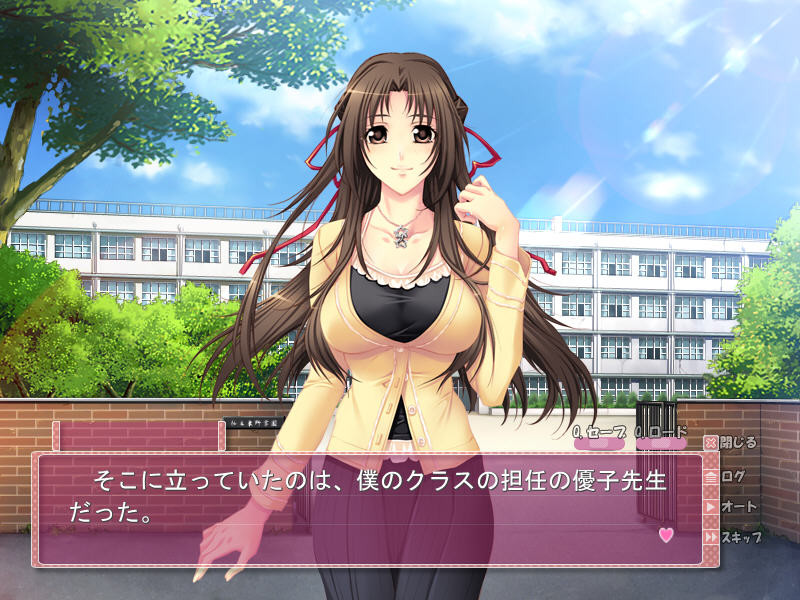 A new sick-room teacher, Nanami, comes to my school. Yes, she is very beautiful and has big breasts. Also, she likes to have sex. One day, I have sex with her in the school sick-room.... And after sex she says to me, "You can come here anytime you want." On the other hand, my classroom teacher, Yuko...