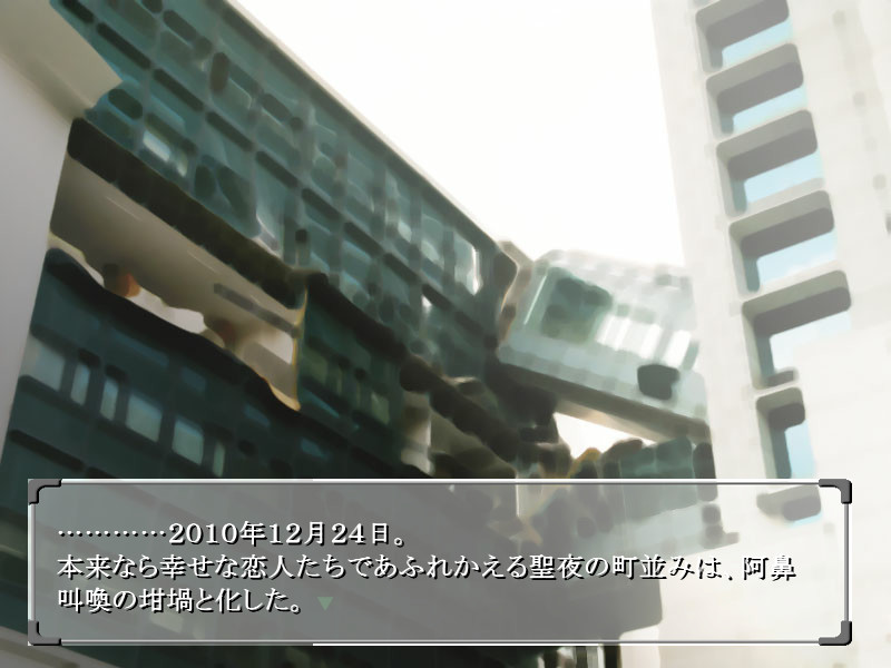 During the celebration party of the first phase of the construction project, Geo-city encountered the unprecedented natural disaster. When the evacuation was over after the disaster, the main character found himself all alone in the deserted school. What is he thinking?