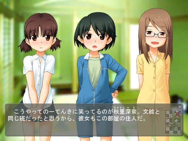 On the first night of the school trip, a group of one boy and three girls gathers in one girl's room to play a game, with undressing as the penalty.