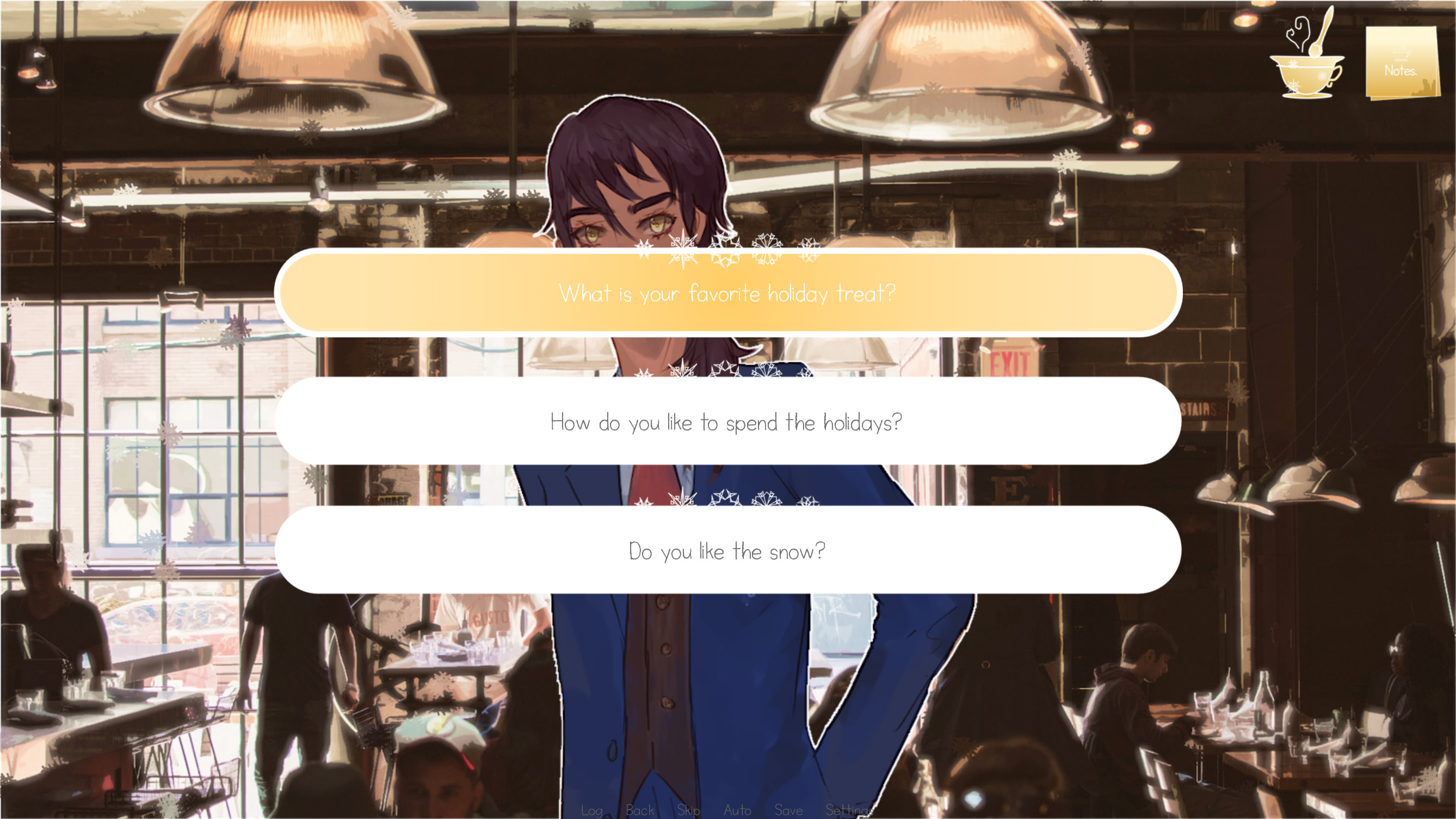 It's nearing the holidays and you find yourself with less plans that usual to fill your end of year schedule, as friends are out of town and most of your family is delayed in travels. Being in a season of giving, your bestie is at least appreciative to have you around to cover her shift for one day before she is back from vacation. Serve customers as a barista at the Brewspout -- filling in on one of the busiest days of the year, the Holiday Mixer special. Create a unique drink combo order based on what you think the person might enjoy and need this time of year. Depending on what you brew, your success might open some future holiday plan possibilities!
