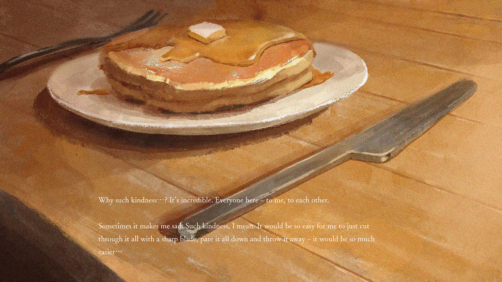 I want my own place, with time to myself, where no one will disturb me, no one will come barging in. I want my own time, my own place, where no one would disturb me, no one would come in here. How lovely it would be if it were... a pleasant evening, with a fine gentle rain outside, in late May or ...