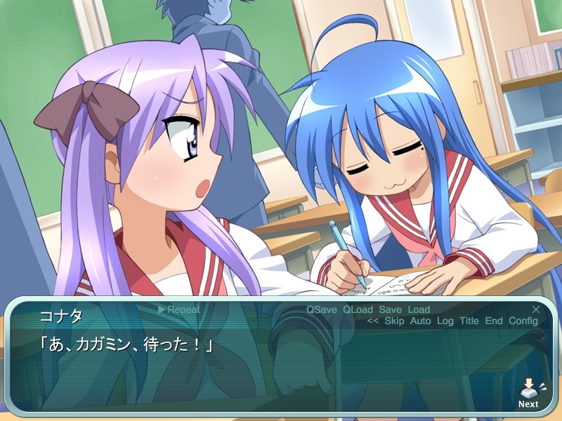 Lucky star cosplay sex game with Kagami Hiiragi as main heroine and Konata Izumi as sub-heroine. vndbreview]