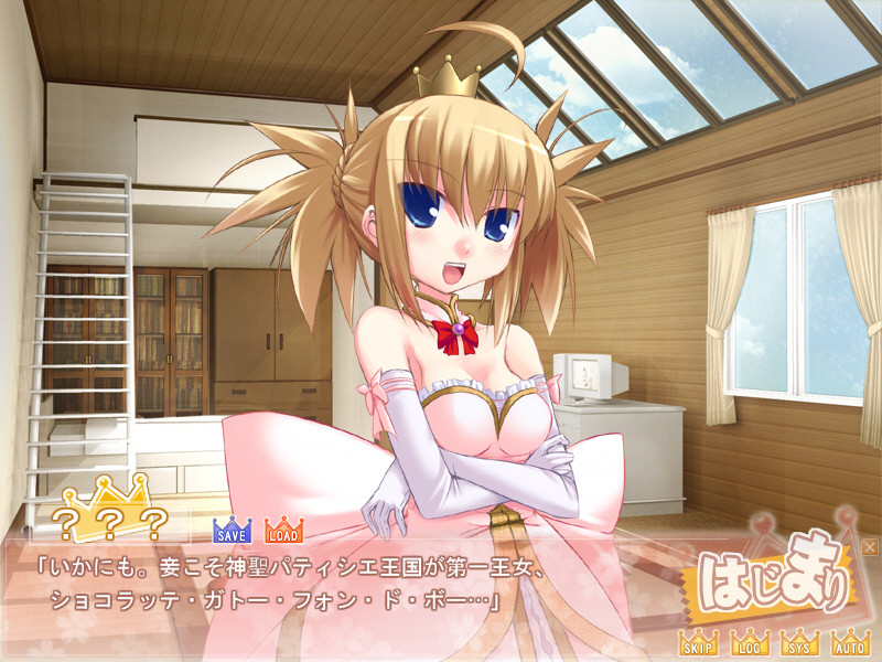 Main character's parents leave home during Golden Week holidays. Protagonist remains alone with the selfish princess of the Patissier Kingdom who gets lodging in this family. He misunderstands the habits of the kingdom that it's "polite to cross body" and gets in trouble with the princess for the whole week.