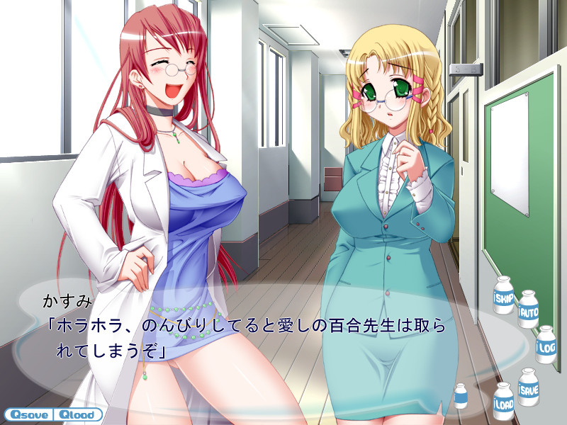 Three glasses-wearing female teachers are squirting from their nipples! When the women reach orgasm, milk erupts from their breasts(!). Together with the protagonist, they embark on an erotic yet heartful comedy. DLsite English]
