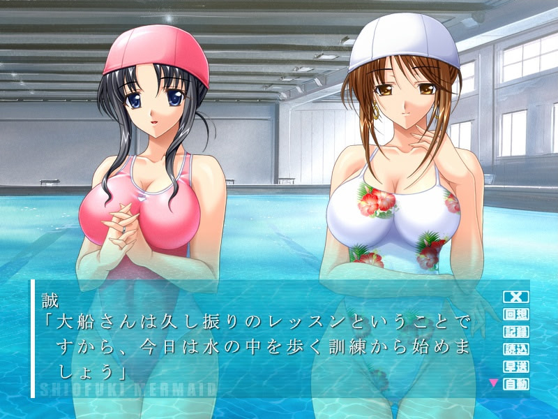 Makoto is an ordinary university student. There is a swimming pool near his place, and he often goes there to swim and enjoy watching women in swimsuits. One day, he is asked to teach swimming to Marina, who can't seem to swim at all. While he touches her body, he gets erect. Marina notices it, and ...
