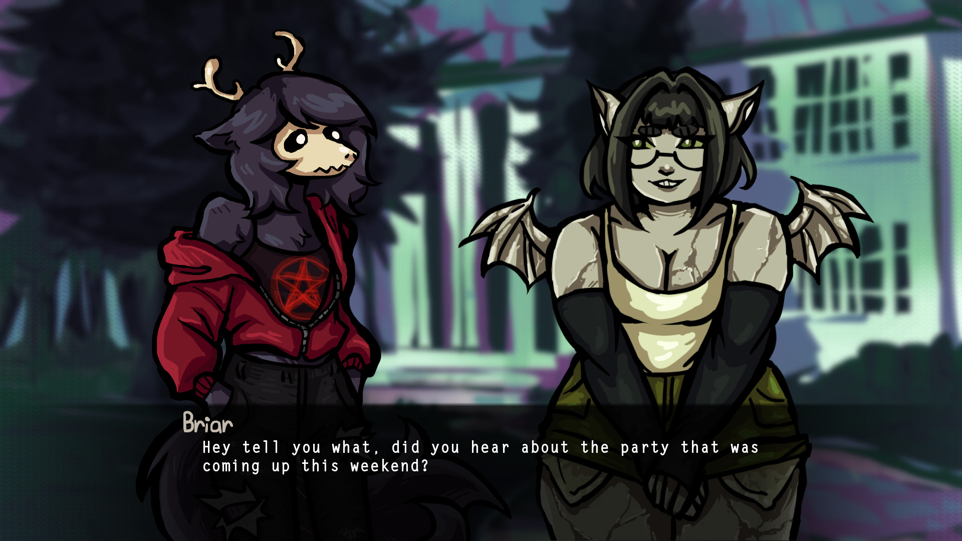 Despite being the odd kid, your best friend Briar has stuck by your side since you two met. As you meet her on the first day, she gives you news of an upcoming party!