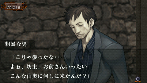 This is an adventure game based on a classical mystery novel. Running out of petrol and lost in the mountains on a stormy night, Ichiyanagi Nagomu, a university student has no choice but to leave his car and ask for help from the nearest mansion within the woods. However, a shock is waiting for him in that dark night. He finds the corpse of a middle age man lying in the rain at the backyard of the mansion. Without any time to recover from his shock, somebody sneaks up behind him and attacks him.