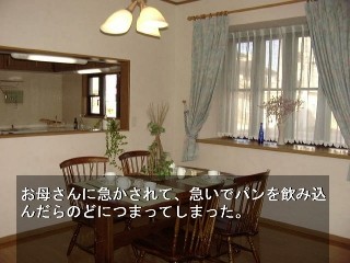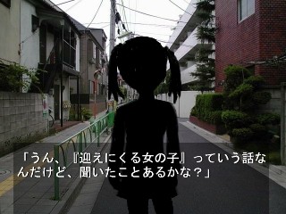 A usual breakfast in the morning. Friend comes by to go to school together. He tells a short ghost story about a ghost girl who ways on the way from school to pick up different students. vndbreview]