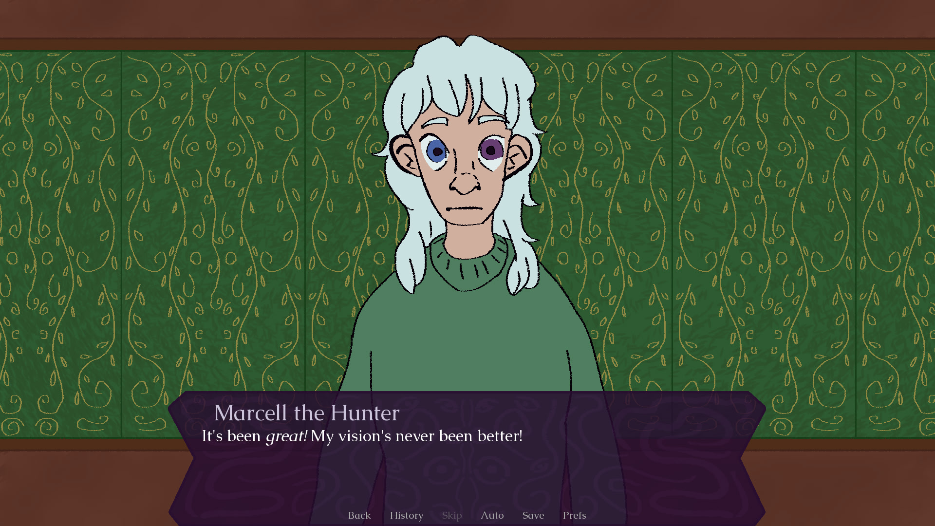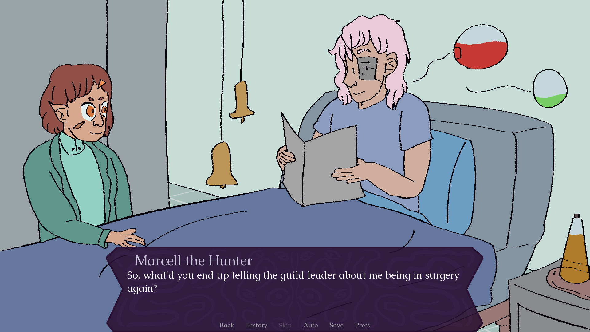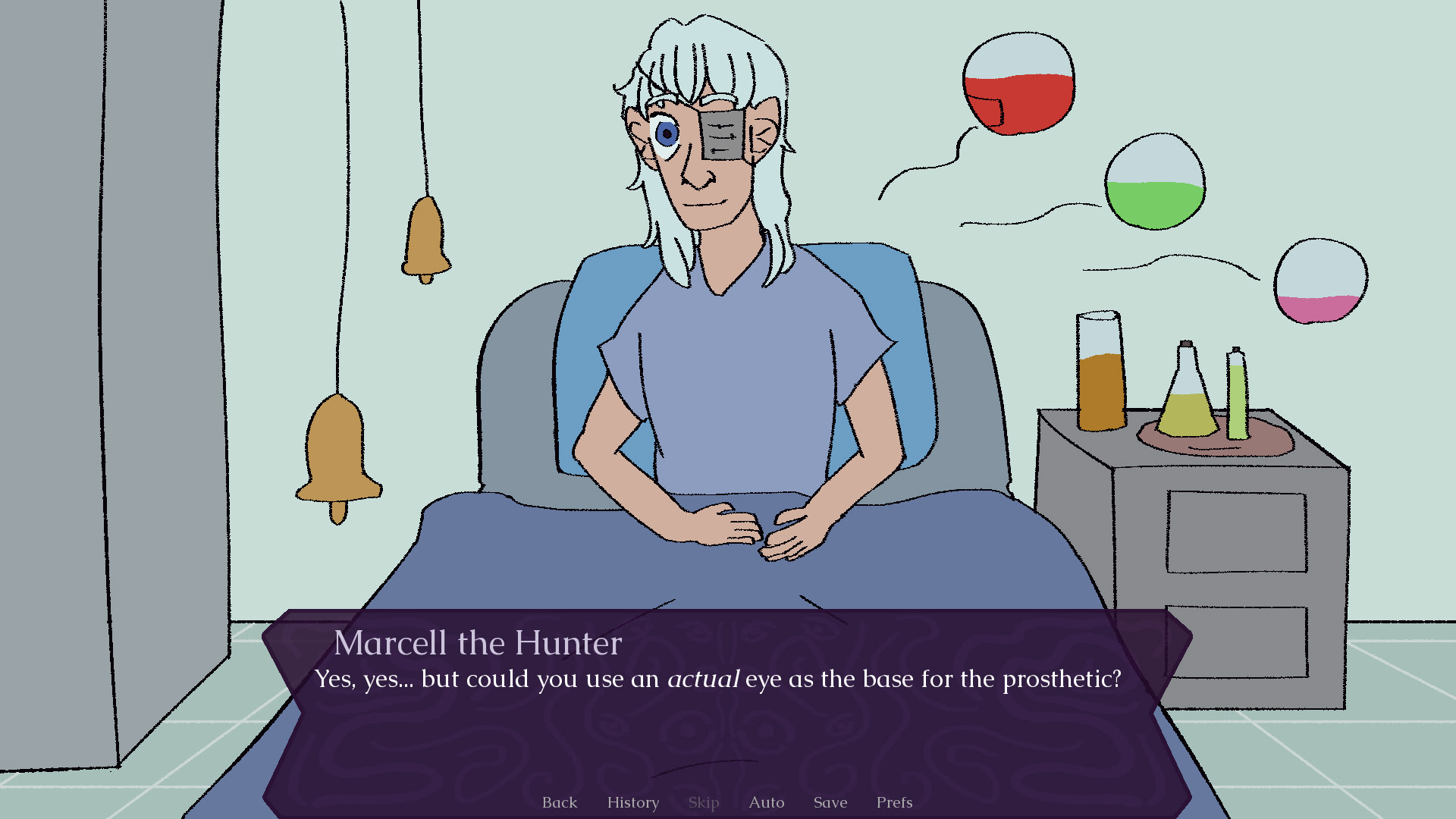 After the monster's guild takes down a beholder, one of the members takes one of its eyes to replace the one they lost. itch.io]