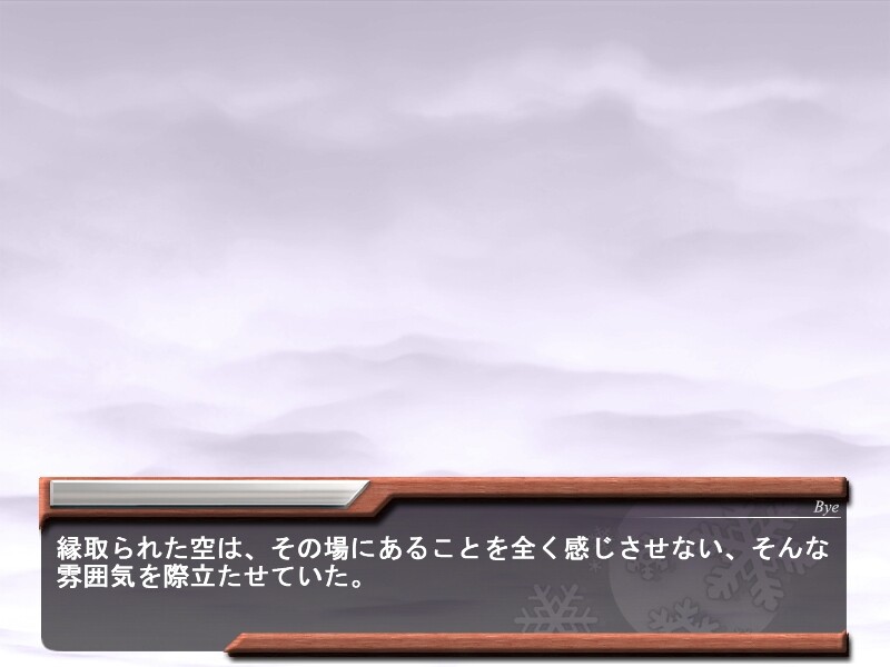 Winter. The season when it snows...A world of only white. The people who live in this world are unblemished. In this town the seasons reel by as always. And as for today, time should've just went by as usual. However, what we call time always swung by... This is the bubble that people flow into. ...