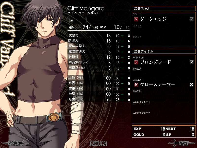 Cliff, who is possessed by "Devil Power", is on a journey with Cecilia, who is also possessed by "Devil Soul". Their destination is Rouleburg, a fortress city. There is a treasure they look for in a huge basement dungeon under Rouleburg. Cliff wants it to get "Devil Power", and Cecilia needs it to r...