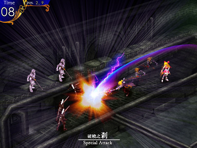 The game is set in the same universe (inspired by Japanese animé) as the rest of the series. Like all its predecessors (except the second game), this is a strategy RPG. The story unfolds in dialogues, and the largest bulk of the game is occupied by strategic turn-based battles. The system is called Action Order Battle (AOB). Every character in your party has action points. Depending on their parameters, he (or she) can execute a certain amount of actions: moving, attacking, casting spells, etc. The character receive experience points not only after battles, but after defeating enemies, or even after inflicting damage on them.