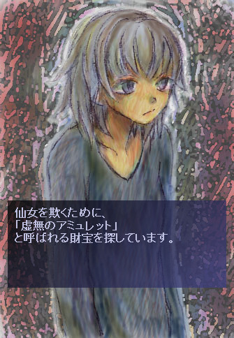 Main character is a traveler in the dark forest. He is looking for a treasure to present to his lover. But there is a curse on the treasure... vndbreview]