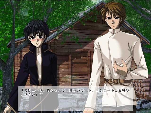 Boys-love hentai sim game, featuring Conrad and Yuuri from "Kyou Kara Maou!" Conrad gives Yuuri sexual training. 30 images (including alternates), and 10 ending patterns.
