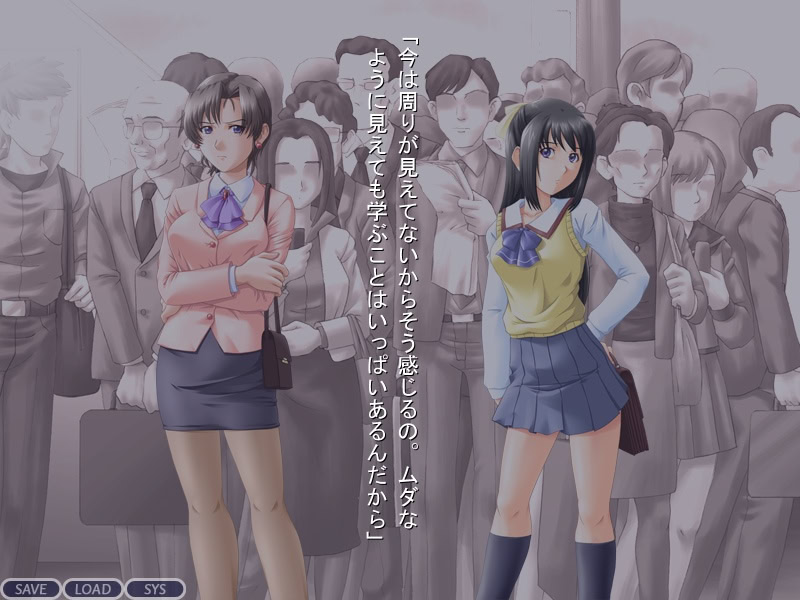 A female English teacher working has a bad relationship with her sister. They used to be close, but can't find common grounds recently. They argue over a trifle and separate at the station, but there is an insidious trap waiting for them in the train car... vndbreview]