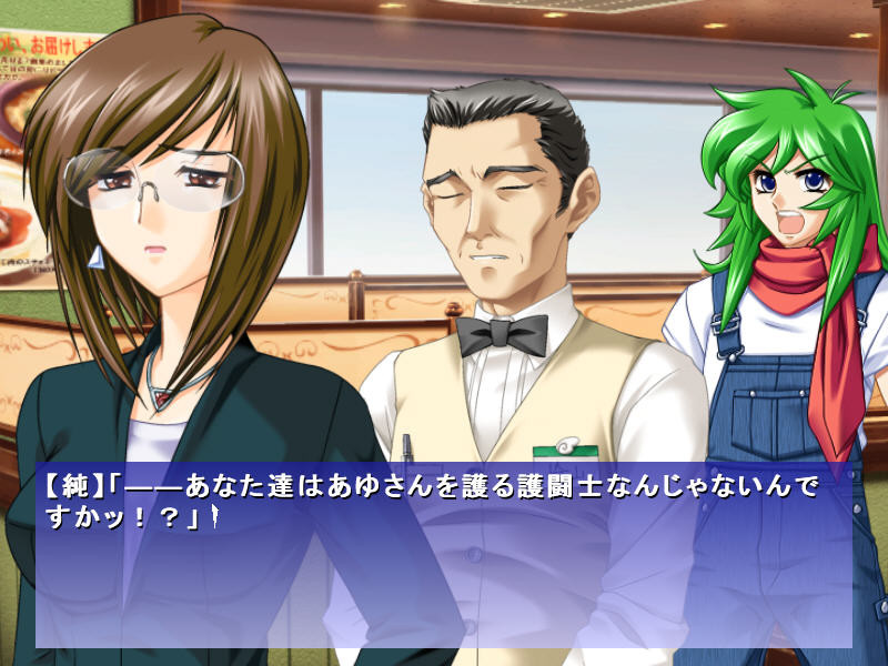 Main character works at a shop when walls start to be destructed by a strange bunch of people who want to create a new world. Protagonist falls in love with their leader Ayu from the first sight. He swears to protect her from whatever crazy enemies she might have.