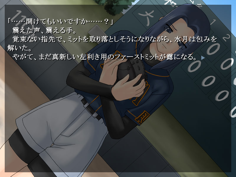 Baseball bus crashes on the way home. Many people die, and main character loses his feet. His lover is in the woman baseball team and currently recruits members for a new team. Protagonist gets invited to become this team's coach. vndbreview]