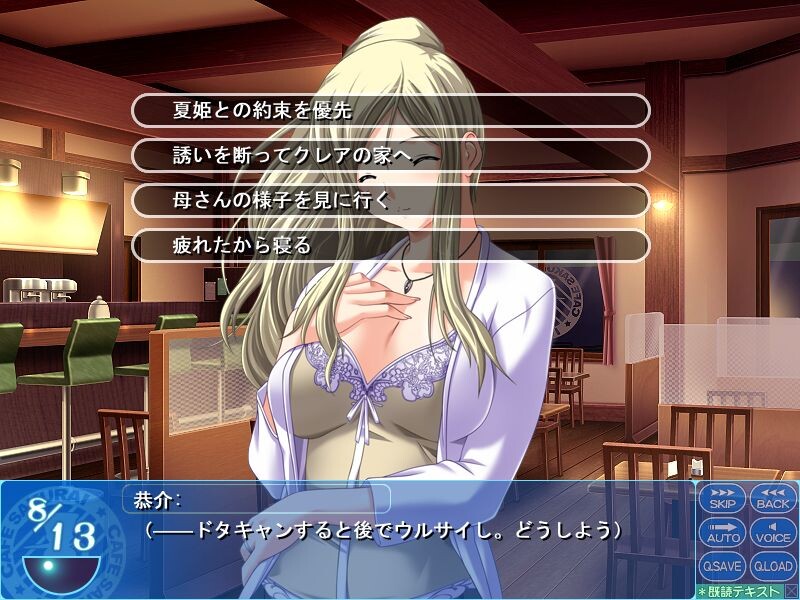There is a coffee shop "Sakurai" at a small shopping arcade owned by a beautiful widow, Sakurako. The number of customers is decreasing due to a new amusement park "Ocean Land" built near by. One day an owner of "Ocean Land" brings up the plan to rebuild this small shopping arcade to a big shopping mall. Only Sakurako is opposed to that plan to defend her coffee shop full of good memories with her husband. The condition to stop this plan is to collect more customers than the coffee shop in "Ocean Land" do during summer. And a renewed costume play coffee shop "Sakurai" opens....
