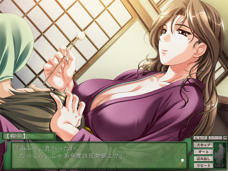 Main character returns to his home village. At night he goes to the sound of water in the woods behind the house and sees his mother masturbating in the basin. She accepts son's desire, and their secret meetings start to happen at various places in the village. vndbreview]