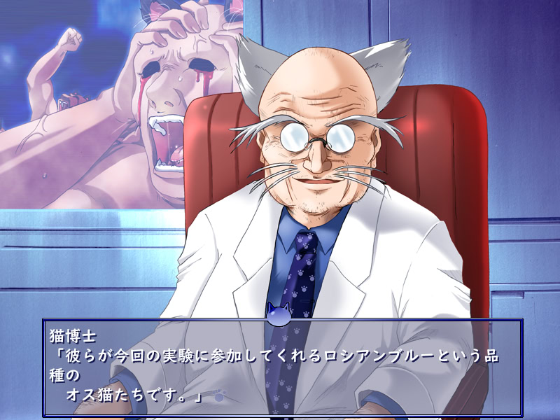 Dr.Cat explores cats through experiments. His first experiment answers question of what happens if a cute cat-girl is put into a closed room with a lot of sexually agitated men. vndbreview]