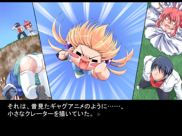 Miki Tachikawa spends happy days with her lover Kazuhiko Kuniyama. But one day girl Mirai comes down from the sky. Her landing creates a crater, but she stays unharmed herself. Mirai comes to break this world! vndbreview]