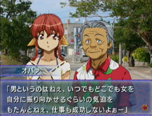 In Fuuraiki 2, you play as a reporter traveling through the southern island of Okinawa (the original was based in the far northern Hokkaido region, making for a dramatic change of setting). As you travel through 100 different Okinawa locations, you'll meet a number of female characters who'll of course fall in love with you and so on and so forth.