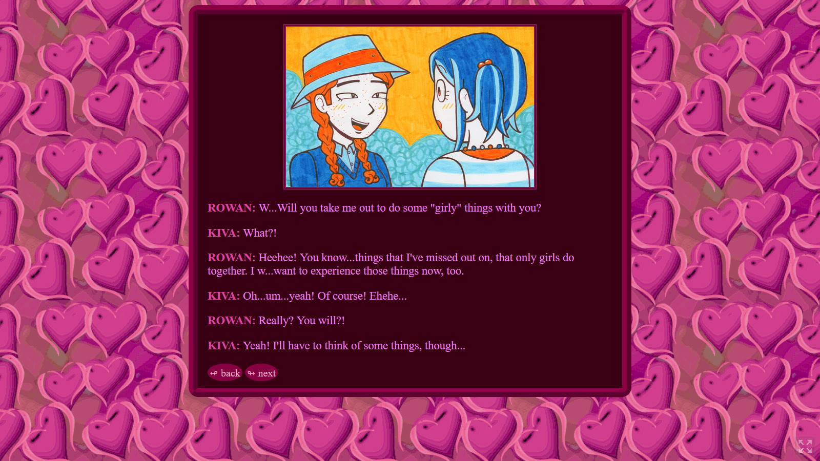 As it turns out, Kiva isn't straight. And, as it turns out, Rowan makes a very cute girl... itch.io]