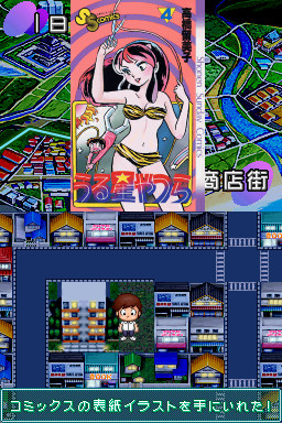 In here you will basically find a rather usual Japanese dating simulation in which you will be controlling Ataru and move him across the many screens that compose the town you will be playing in. You can enter some houses, talk to people you find around the scenario and even collect some items, all by simply moving your character to the place where the house/person/item is.
