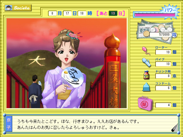 Main character is shown a mysterious adult toys show one day. Instruments there are of unknown usage and effect. He goes on a trip and uses these items on the girls he meets. vndbreview]